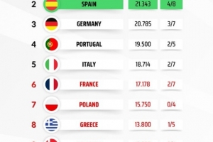 体育资讯4月16日讯 本赛季欧冠8强战全部结束,随着拜仁淘汰皇马晋级,德甲联赛欧战积分与西甲联赛差距缩小。