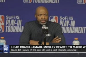 体育资讯4月18日讯 NBA附加赛,魔术121-90战胜黄蜂。赛后,魔术主教练莫斯利接受了采访,以下为全文。
