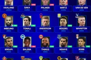 体育资讯4月4日讯 德转盘点了英超20支球队每队身价最高球员,其中哈兰德、萨卡等在列,具体如下:
